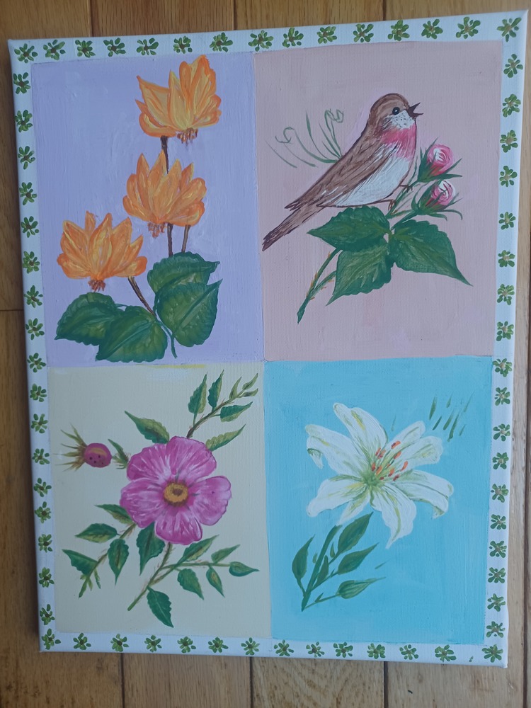 Gallery Click or tap on image to see full view Gypsy Susie Wood Warbler, 28x22cm canvas Sweet Bunting, 28x22cm canvas Scarlet Tanager, 28x22cm canvas Circular black bread board Tray w/flowers, approx. 40x25cm Black tray folk art, approx. 40x25cm